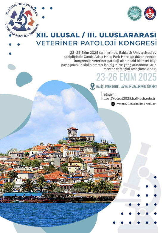 12. Ulusal ve 3. Uluslararası Veteriner Patoloji Kongresi 23 - 26 Ekim 2025 tarihlerinde Balıkesir Üniversitesi Veteriner Fakültesi ev sahipliğinde düzenlenecektir. Kongrenin Haliç Park Hotel (Ayvalık) Cunda adasında yapılması planlanmaktadır. Kongre hakkında ayrıntılı bilgiye link üzerinden ulaşılmaktadır.